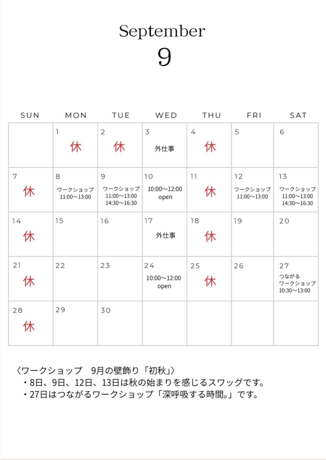 9月の予定のご案内