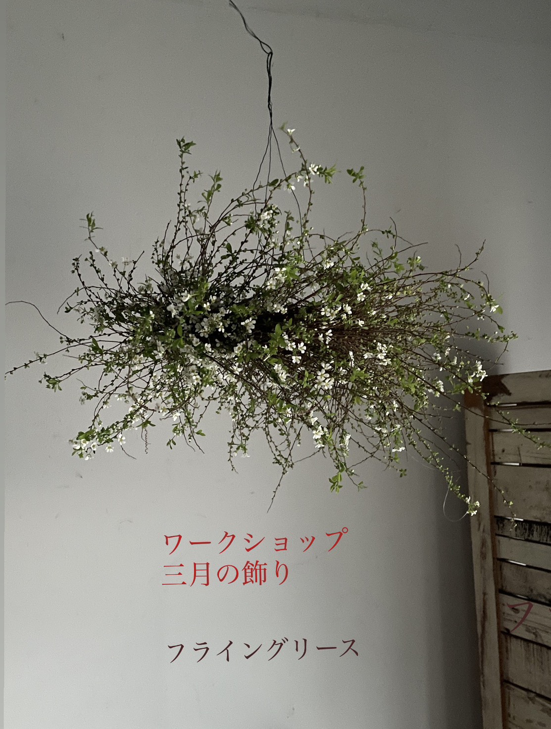 春の枝で、リース又はフライングリースを