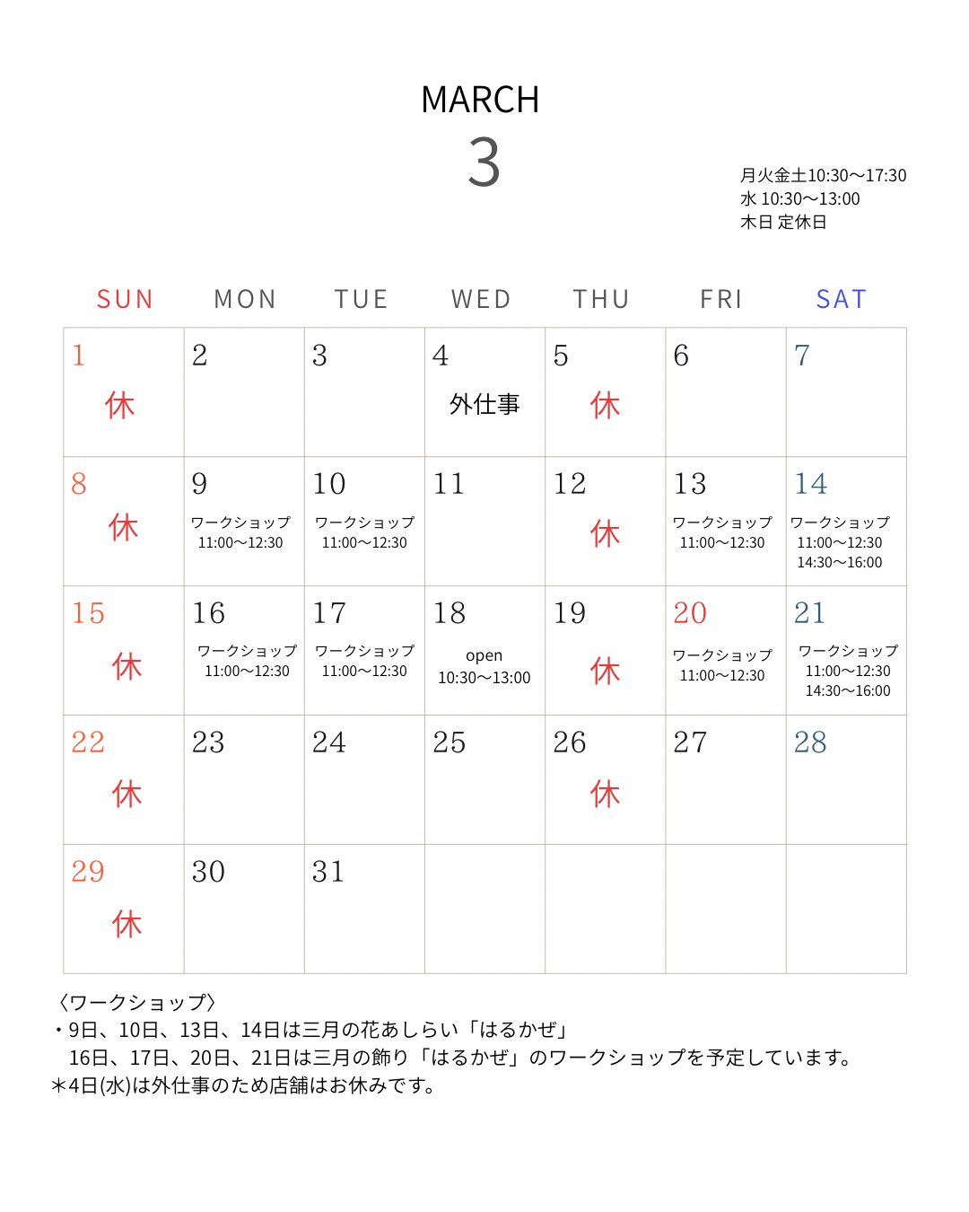 *4日(水)は外仕事のため店舗はお休みです。